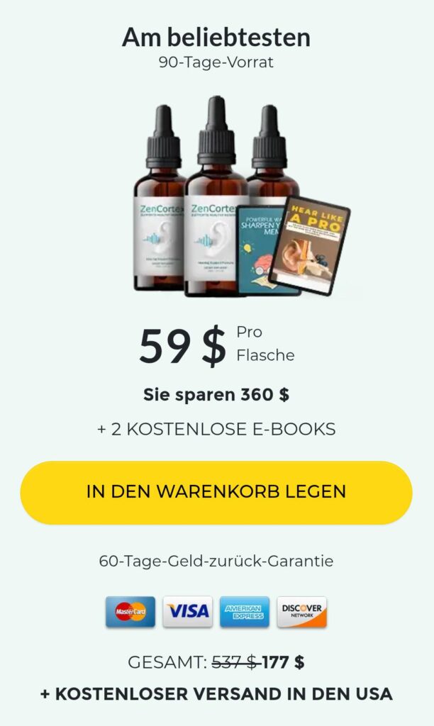 Der Kauf von ZenCortex™ ist sehr einfach. Sie können direkt über die offizielle Website von ZenCortex™ bestellen, welche die einzige autorisierte Quelle ist. Dort können Sie Ihr bevorzugtes Paket auswählen und von speziellen Rabatten sowie kostenlosem Versand profitieren, sofern verfügbar.